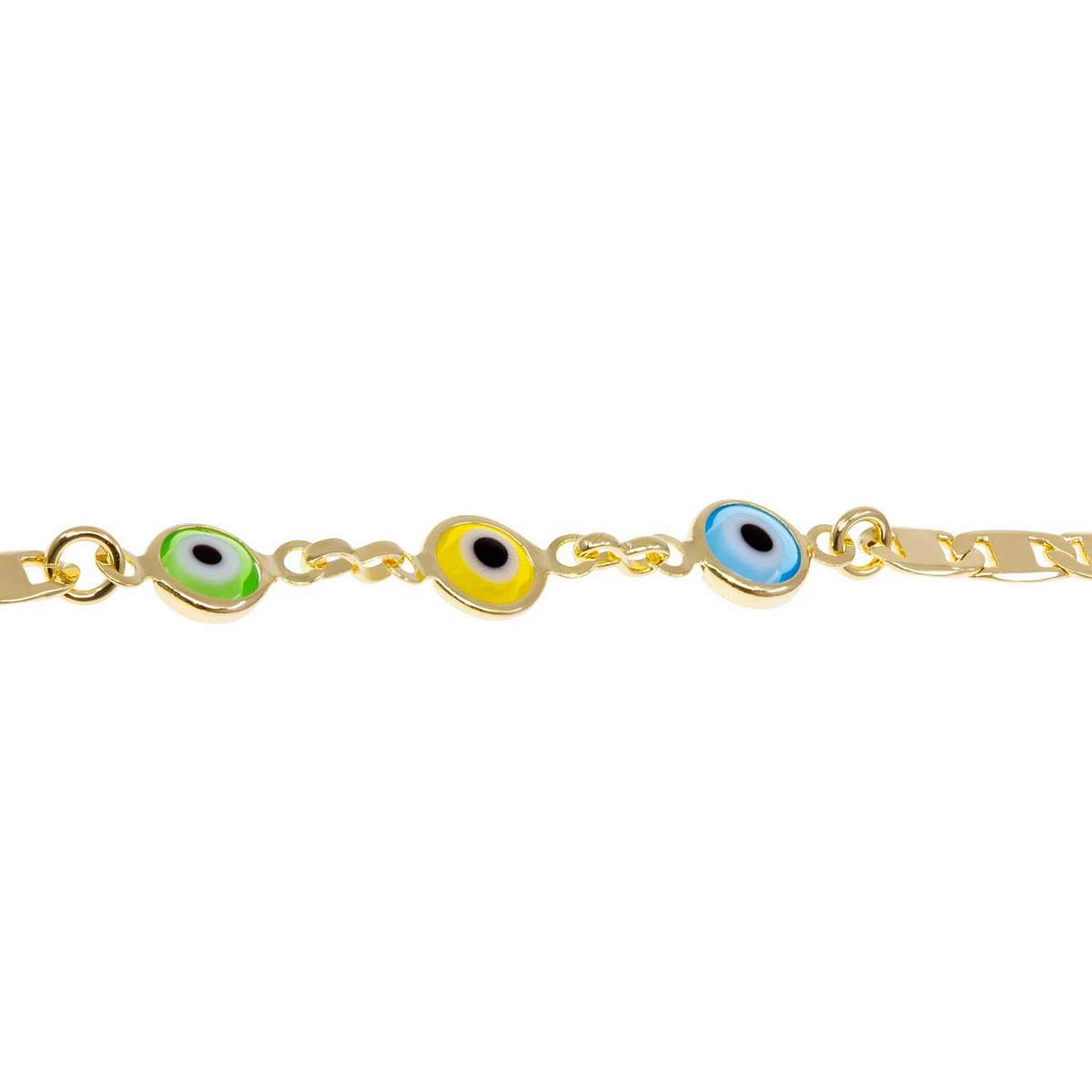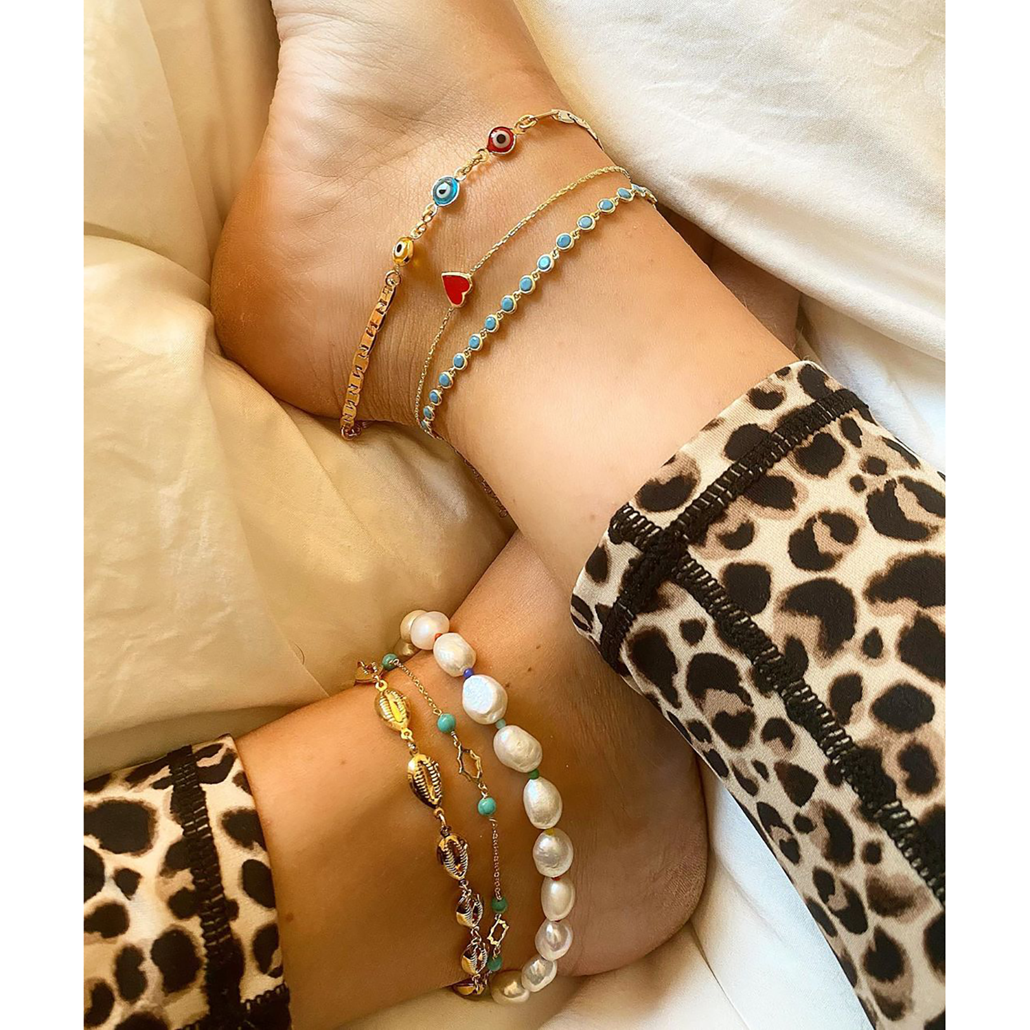 A little classic, a little edgy, and fully fierce, this gold anchor chain anklet is sure to keep admirers looking. Dual trios of evil eye beads will help you focus your intention while amping up the protective energy in fabulous style. A perfect complement to more delicate pieces like the Rainbow Dainty Dangle Anklet.