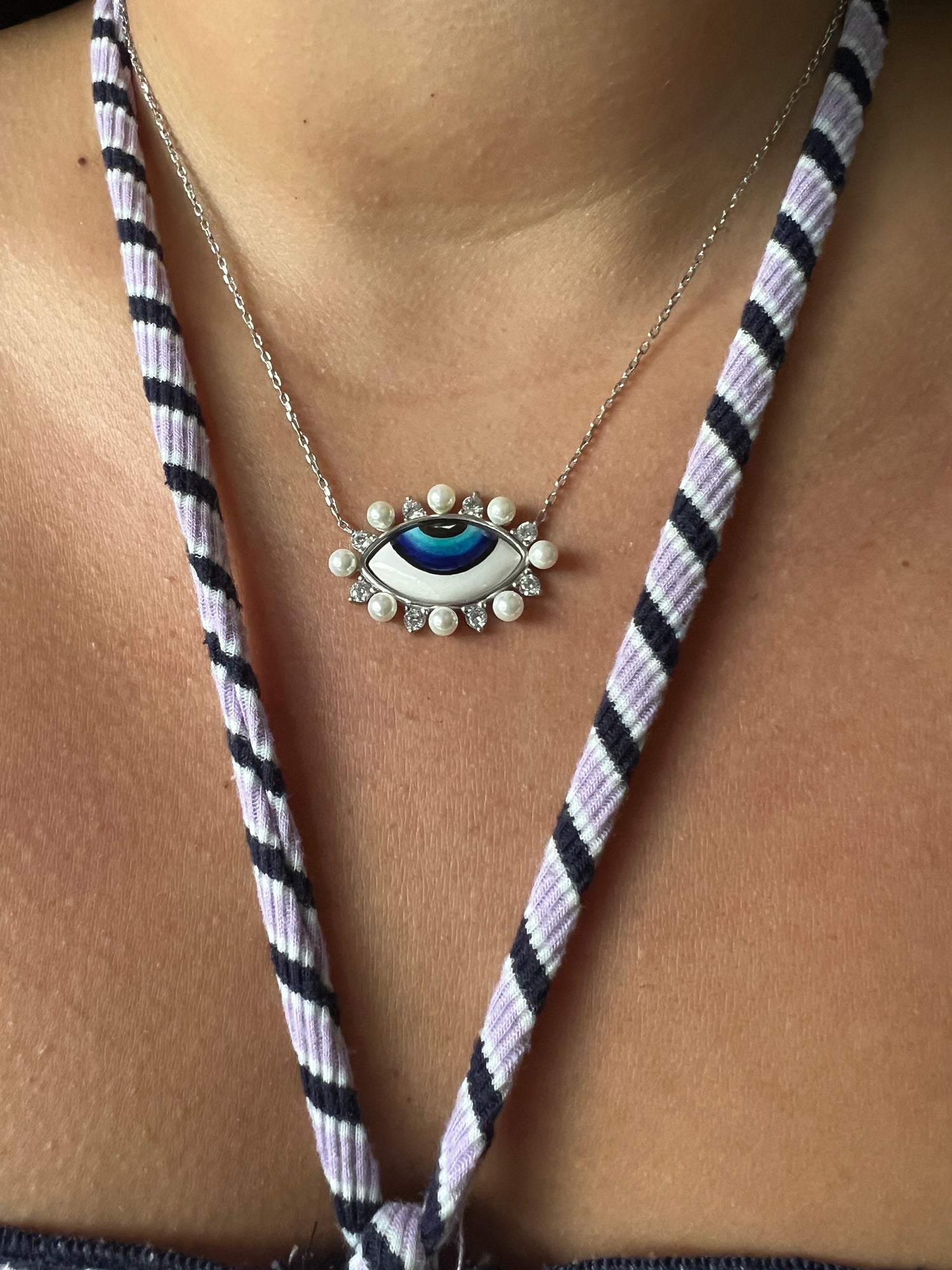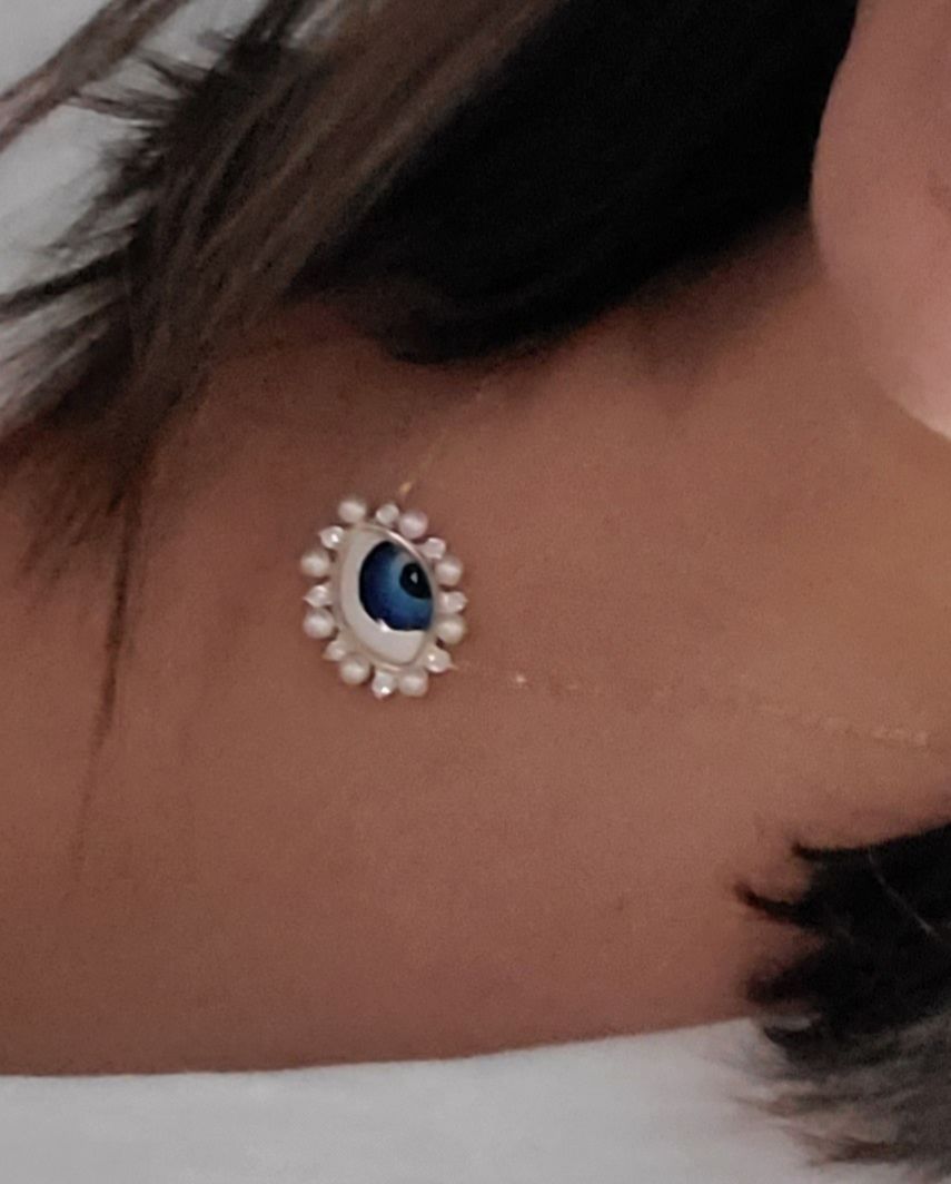 I had been looking at this necklace for weeks until a friend said just get it! I did and it didn't disappoint! The blue in the picture doesn't do justice. Love, love!
