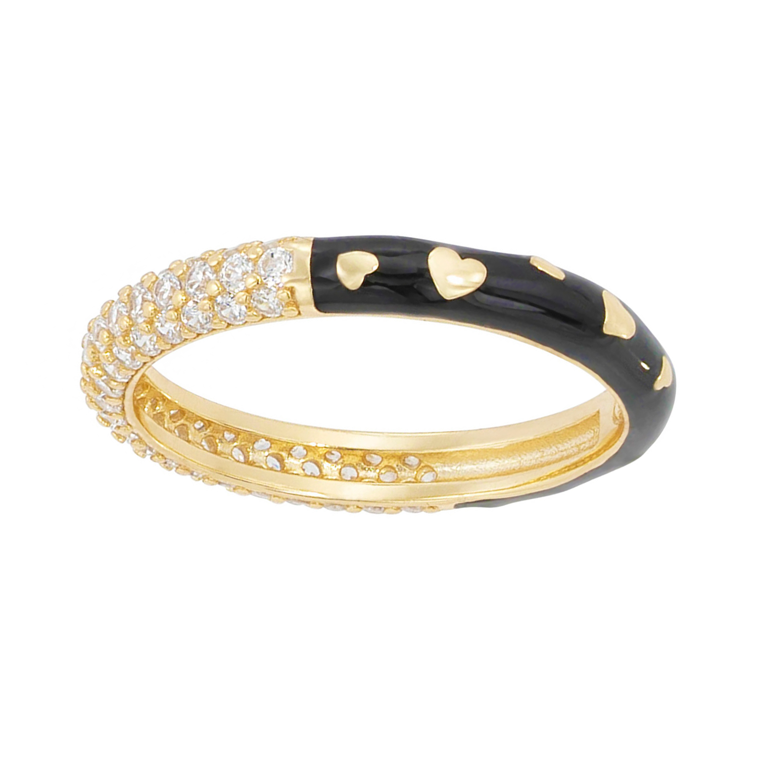 If you don't believe in love at first sight, just wait until you meet our Bae Got Bling Crystal Ring. Her dual finish style, which includes a deep onyx enamel dip sprinkled with golden hearts on one half and a sea of perfect clear pavé crystals on the other, means she's got twice the personality of your average piece of flair. See? We knew you'd be falling head over heels in no time.