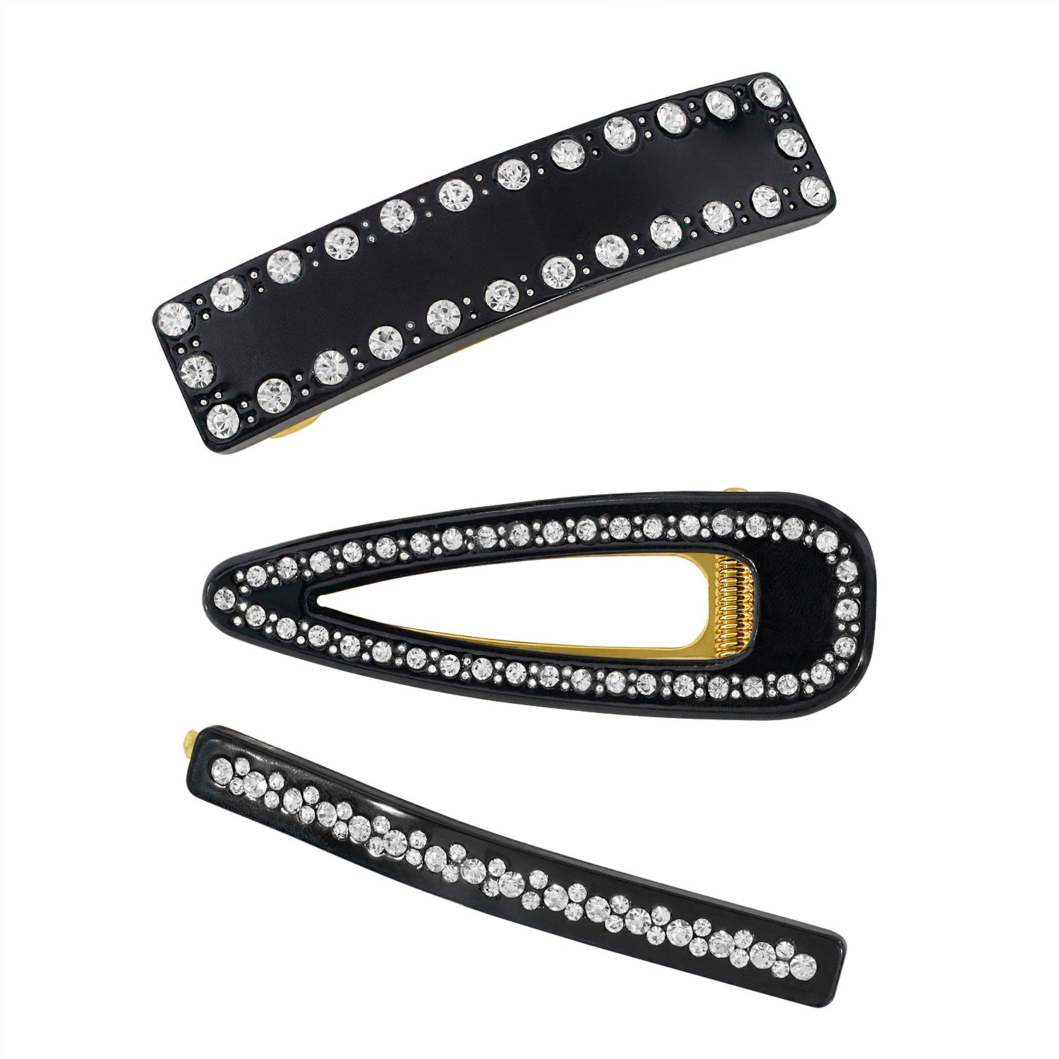 Check out this trio, all dressed to the nines with their enchanting crystal patterns on sleek black. "What's the occasion," you ask? Nothing special required—they always bring their A-game when it comes to riding with you! The Enamored Crystal Hairclip Trio is full of spark and spunk, twinkling with dreamy possibilities for how to spice up your 'do. From riding curls and waves to keeping those wayward bangs under control, these clips have got you covered.