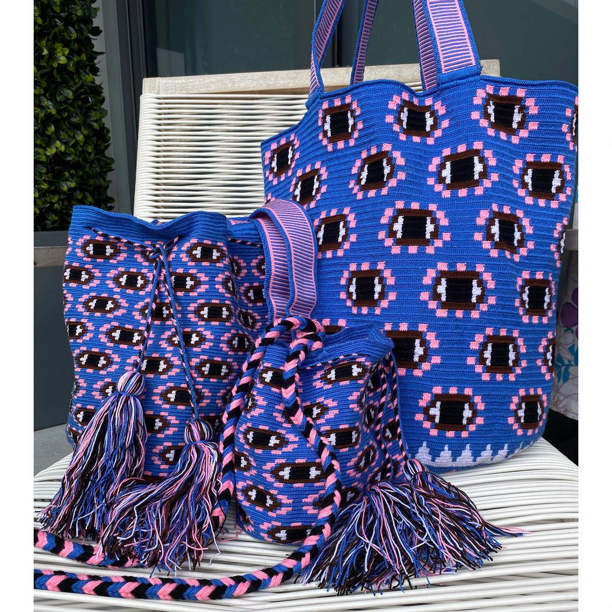 Hand-woven and made with care in Colombia, our Eye Can't Live Without Bag is an accessory-must have. Each bag was crafted by female Colombian artisans and uniquely designed by RAGEN. A portion of the proceeds help benefit Fundación El Origen, which helps provide education and resources to children in developing Latin American countries.