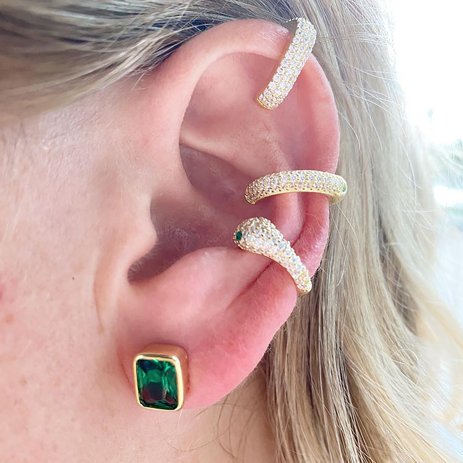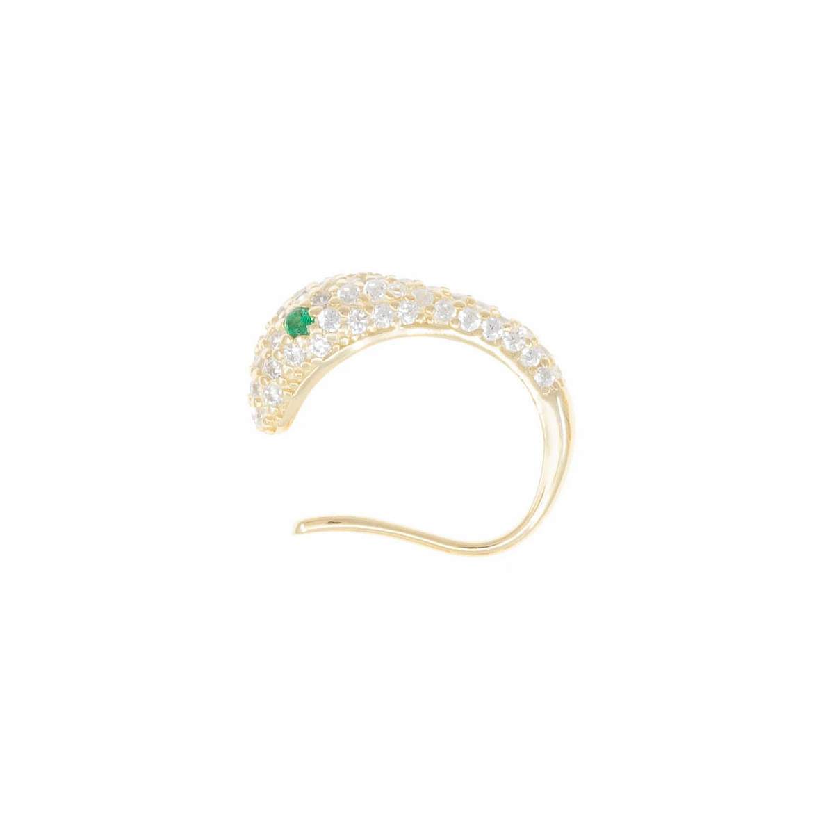 From its serpentine curl to its glowing emerald green eyes, the high-shine Hydra cuff drips with allure. Let this charming crystal snake slither around your ear and it'll work its magic on every pair of eyes it greets. To elevate the inevitable enchantment, pair with our Snake Charmer Ring or Serpent Necklace.