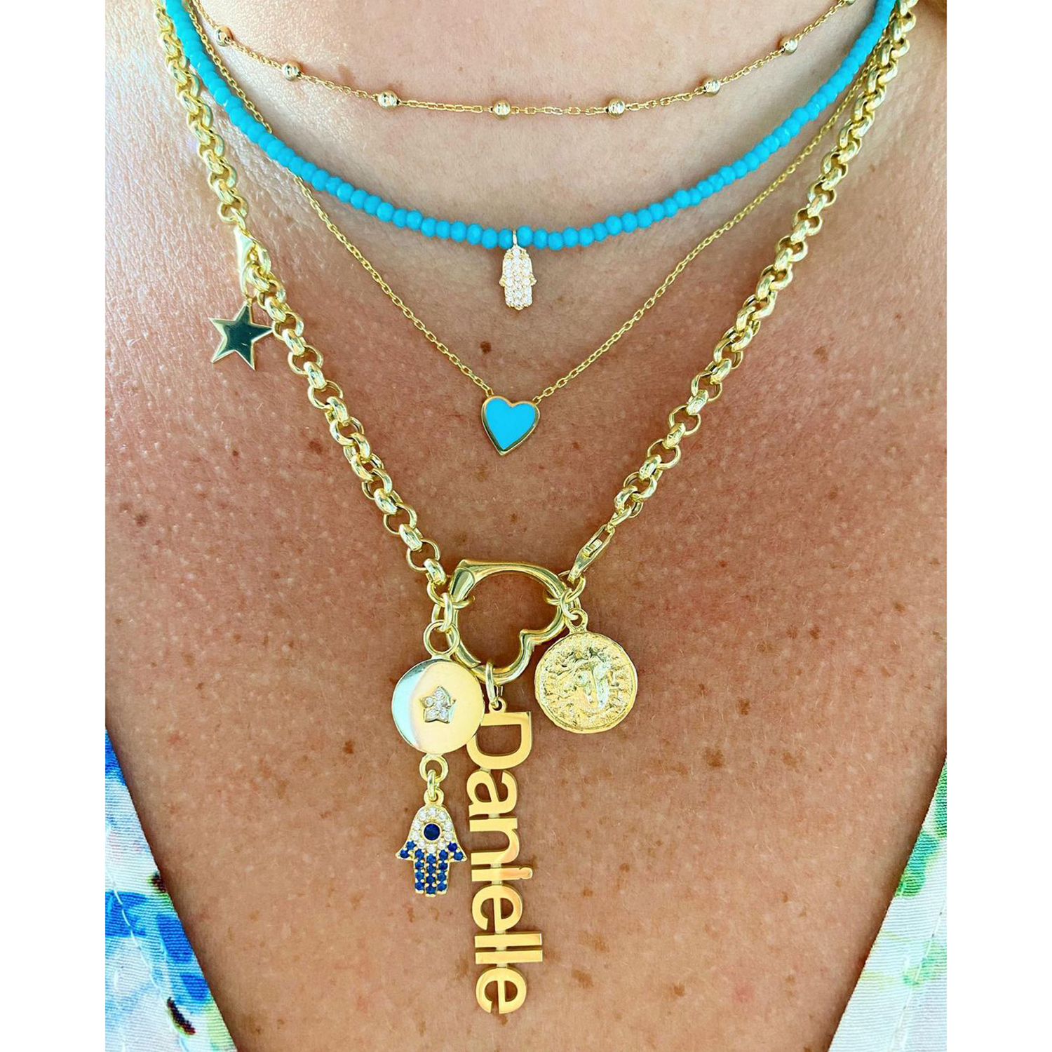 A bold splash of beautiful blue contained within soft curves and a sharp point, this classic charm necklace is equal parts sweet and sass–just like you. Wear with our One Love Bracelet in Blue and One Love Blue Heart Studs for a complete look or mix and match to give your ensemble some extra love.