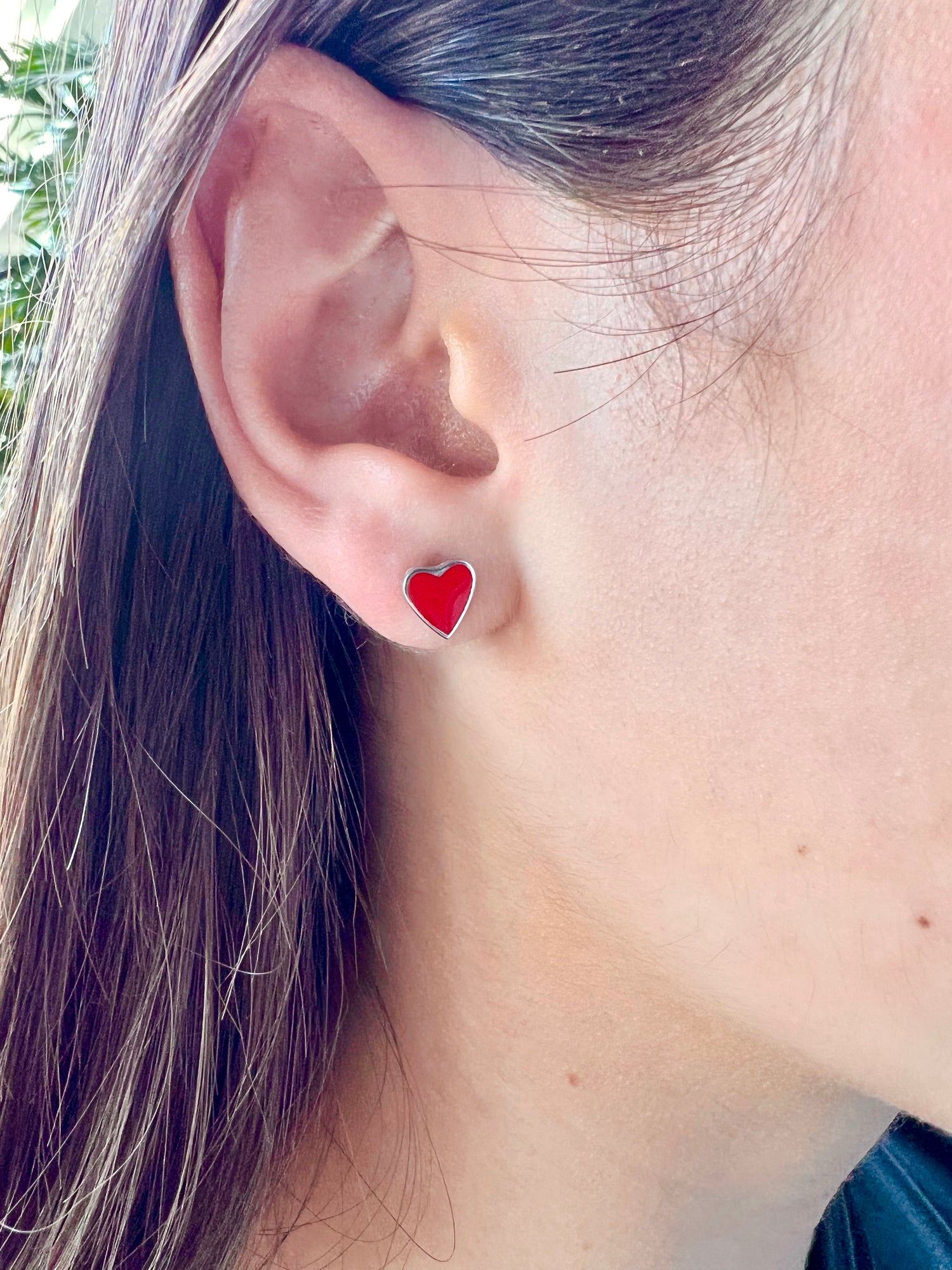 One Love Pink Heart Paired Studs