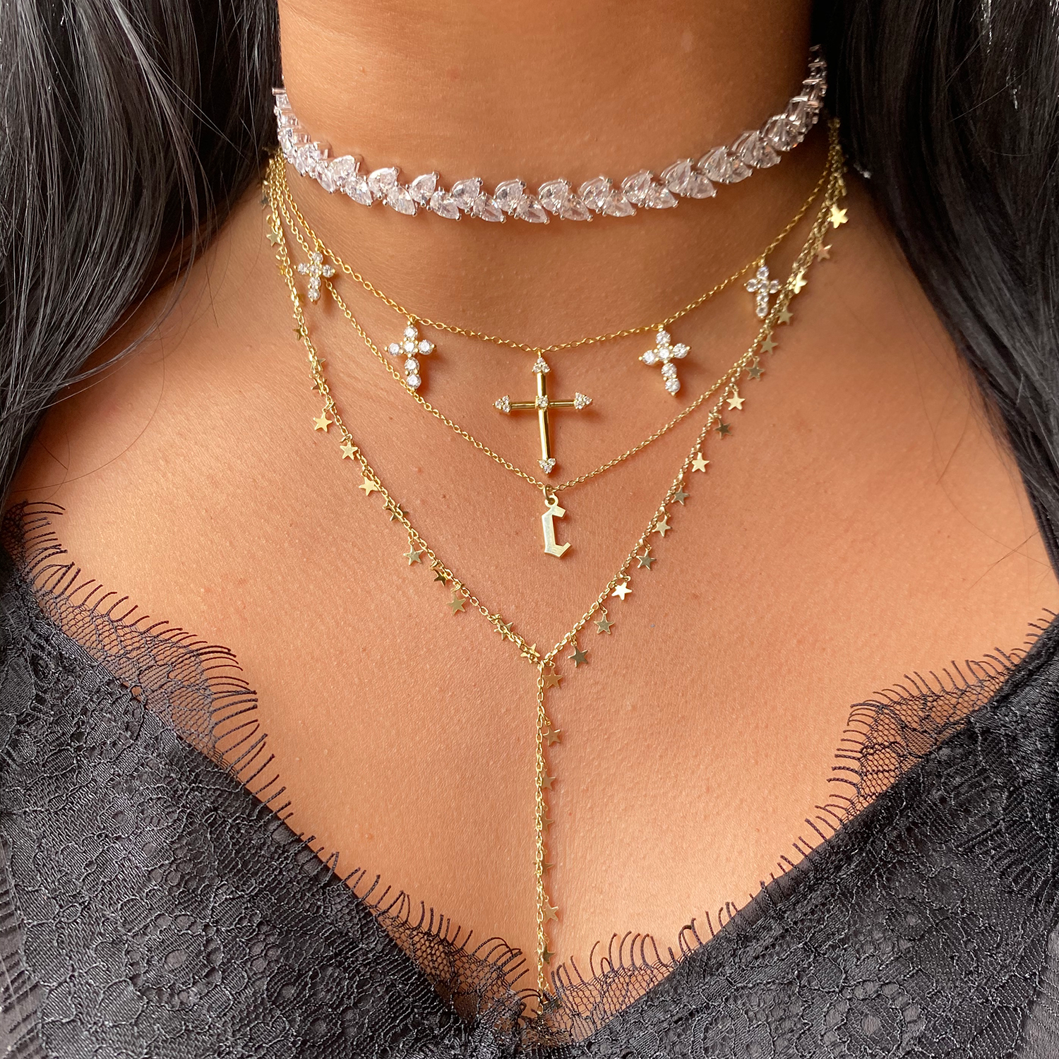 Our super sexy Pear Cut Crystal Choker to top off your necklace line up to add some glam and icy crystals. Pear with our Canary Heart Necklace for maximum chicness.