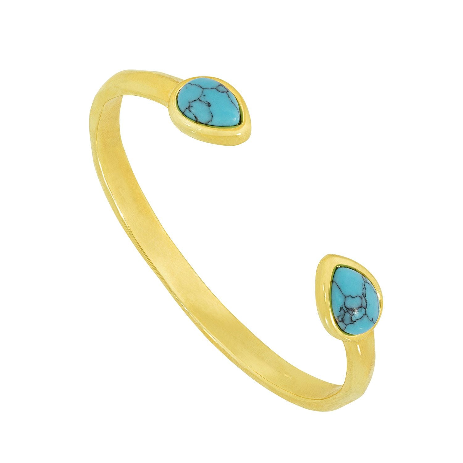 Need an extra boost of confidence? Our Sky Arrows Turquoise Bangle was made to remind you that when it comes to your goals, the sky's the limit. A pair of serene turquoise teardrop stones accent a shining metallic open cuff, designed for easy wear and everyday magic. Slip on and see what kinds of brilliance you discover together