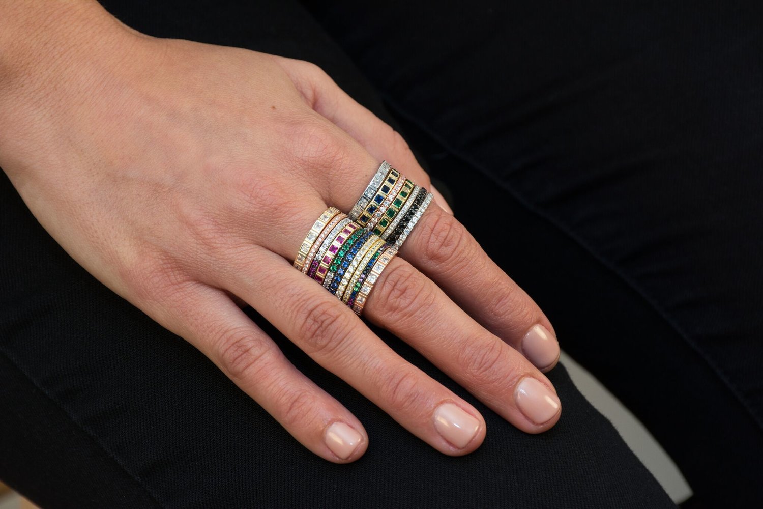 I ordered two of the sapphire bands & I love them! They are a great addition to my stack. The sapphires are a deep blue & they are beautiful!