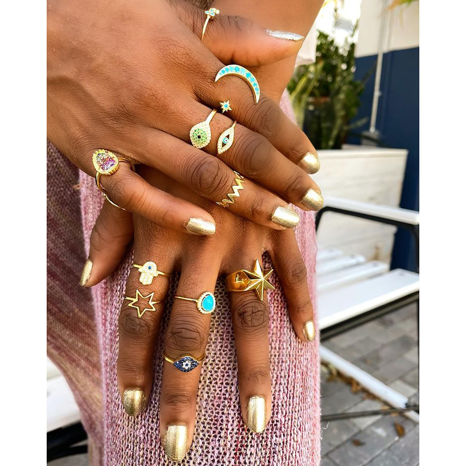 Hypnotic, exotic, and beautiful, there's nothing quite like our Symphony in Blue. This mysterious little wonder sparkles with sapphire blue crystals in a black setting, framing a miniature evil eye design in pavé gem perfection. If traditional talismans ain't your speed, you'll want to give the Symphony a spin—just spritz on a heady perfume, smudge on some dark liner, and let the mojo magic happen.